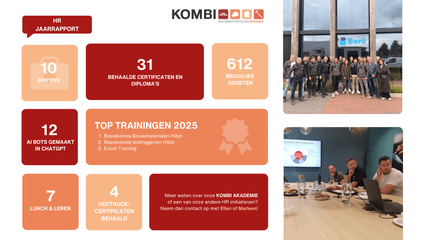 Via de KOMBI Akademie bleven we investeren in groei. Met Lunch & Leren-sessies en maar liefst 31 behaalde certificaten en diploma’s in 2025.
