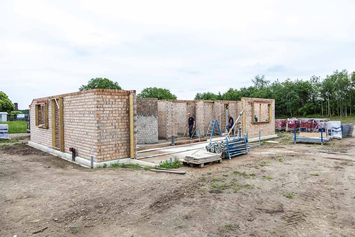 Wat je nu ziet is het Poriso werk, wat op korte termijn geïsoleerd wordt met Kingspan isolatie. De gevelstenen die klaarstaan om verwerkt te worden zijn de Paarsblauw waalformaat handvorm van Wienerberger Maaseik. Een van de mooiste gevelstenen, als je het aan onze collega Rene vraagt!